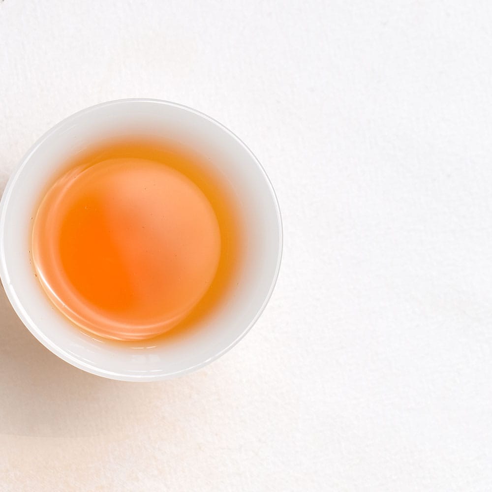 Following the lineage of Zhengshan Xiaozhong but crafted with finer techniques—gentle withering, slow fermentation and light pine-charcoal baking—this wild version combines high-mountain ecology with meticulous processing. Oolong-style shaking lifts the fragrance, low-temperature fermentation preserves the sweet fruit notes, and charcoal baking refines the finish. The liquor is amber gold, with a gentle lingering peach aroma and a clean, sweet aftertaste.