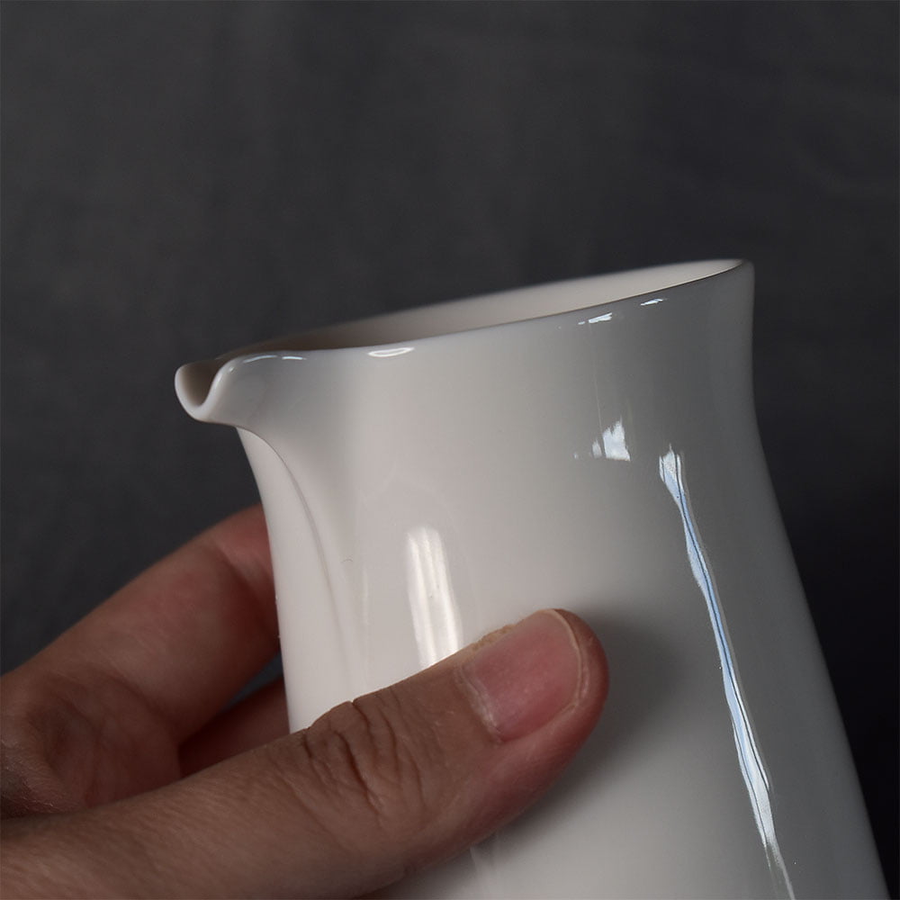 一款羊脂白素白公道杯,素净温婉, 静静的,摆在那,已是很美好。 亮光釉面,胎质细腻润泽, 纯粹的给人一种淡雅清新之感。