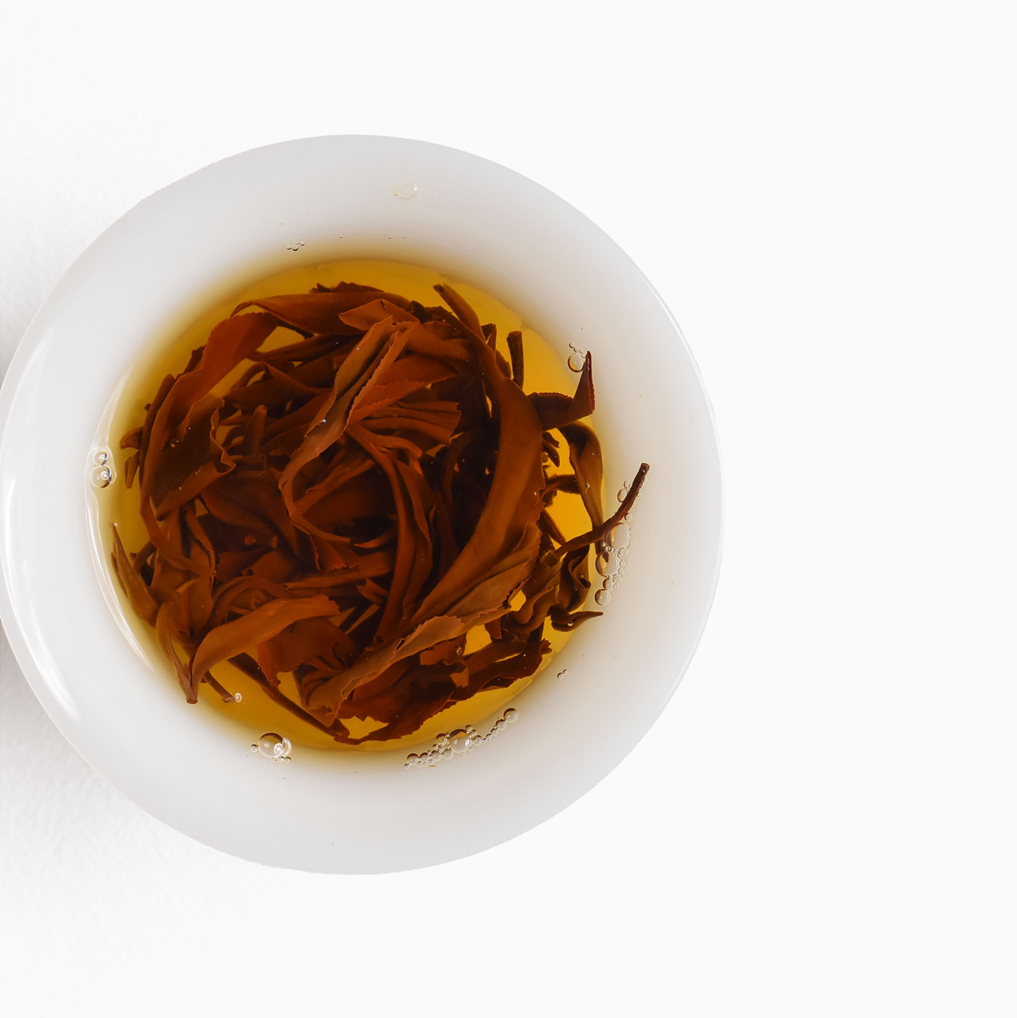 乾茶條索緊結修長,芽頭顯露,金毫豐富,色澤金黃與烏潤相間。沖泡後芽葉舒展自然,葉底柔軟完整,呈紅褐色。